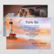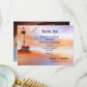 Un Carte de remerciements mariage romantique orné d'une peinture d'un phare à la plage avec mouettes, au coucher du soleil. De l'autre côté se trouve votre photo mariage préférée.