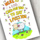 L'arrière - plan de cette carte est blanc. Du haut vers le bas est écrit "Voici une petite carte pour vous de dire que vous me manquez". Les lettres sont dessinées à la main, jaune et orange. Les mots sont encadrés de petites fleurs roses et violettes. En dessous se trouve le dessin d'un mignon petit mouton, dessiné dans un style de dessin animé. Il a une fleur rose dans la bouche et sourit au spectateur. Il se tient dans un champ d'herbe verte avec de petites fleurs roses. Derrière les moutons, un ciel bleu est visible