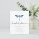 Invitations de douches nuptiales de libellules. Cette invitation est créée avec une libellule colorée à la texture aquarelle. Un magnifique design de douche nuptiale parfait pour les douches d'été, de printemps et de fête du thé. Customisez ce design avec vos informations de douche nuptiale et tout message personnalisé que vous souhaitez inclure!