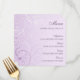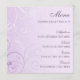 Menu de repas de mariage dans le motif élégant de remous de lavande, personnalisable avec vos détails et disponible dans les produits assortis de mariage.