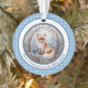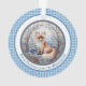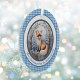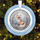 Ce charmant ornement illustre un renard orange et blanc contre une forêt vinicole bleue et blanche. Elle est bordée de marron et de bleu, avec un accueil personnalisé, et un arrière - plan en vichy bleu frais. Assurez-vous de taper le texte souhaité dans la zone Personnaliser. Les couleurs uniques et le style charmant de cet ornement renard ajouteront une touche unique à votre sapin de Noël ou à votre décor de maison.