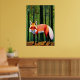 Le renard rouge debout dans la tente forestière de l'arrière - plan. C'est un art généré par l'IA.