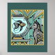 Dans cette remarquable illustration d'inspiration Art Déco, chat poché et poisson élégant partagent un moment de curiosité mutuelle. La fourrure rayée complexe du chat reflète les courbes hypnotiques des nageoires du poisson, créant une interaction harmonieuse de lignes et de motifs. Riche en turquoise, en or et en noir, ce design capte une atmosphère sophistiquée et vintage, parfaite pour ajouter une touche de glamour des années 1920 à toute pièce ou accessoire. L'arrière - plan géométrique et le cadrage audacieux accentuent la scène captivante, ce qui en fait une pièce intemporelle que les spectateurs invitations imaginent la conversation silencieuse entre ces deux créatures.
