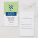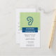 Une oreille bleue profonde stylisée se tient contre un subtil arrière - plan vert clair rayé. Parfait pour les otolaryngologistes, audiologistes ou à peu près n'importe quelle entreprise traitant de l'oreille et/ou de l'ouïe. Laissez le dos tel qu'il est avec les informations de rendez-vous ou customisez-le à votre goût. Disponible en couleurs alternatives avec des produits correspondants.