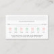 Gardez vos patients organisés et souriants avec cette carte de rendez-vous dentaire moderne avec des icônes de dents propres dans les tons alternatifs rose et vert pour représenter chaque jour de la semaine. Il vous suffit de tourner autour ou de vérifier la dent correspondant au jour prévu, et d'ajouter la date et l'heure du rendez-vous pour un rappel clair et facile à lire. Le design Arrière - plan est gris clair et blanc pour un look élégant et professionnel, tandis que les pops ludiques de couleur ajoutent une touche fraîche et accessible. Texte en gris foncé. Le dos de la carte comprend une section dédiée aux notes, parfaite pour écrire des rappels sur la prochaine visite dentaire du patient. Le côté arrière comprend également le nom de votre cabinet dentaire et le numéro de téléphone pour une référence rapide. À la fois fonctionnelle et élégante, cette carte de rendez-vous est un outil professionnel conçu pour les dentistes, les orthodontistes, les cabinets dentaires pédiatriques, les hygiénistes, etc., qui veulent rendre la communication avec le patient moderne, mémorable et efficace.