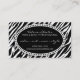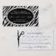 Carte de visite simplement chic d'impression de zèbre avec le rappel de rendez-vous sur le postérieur - perfectionnez pour un coiffeur, un salon de coiffure ou un spa. Customisez avec votre propre texte pour une carte parfaitement personnalisée qui saisira l'attention de vos clients ! {{Clic "PERSONNALISER" pour changer couleur d'arrière - plan, couleur des textes, police et pour plus d'options de édition. Pour des couleurs ou l'aide spécifiques avec la disposition, laissez- tombermoi une ligne chez mel@creativemel.com - je serai heureux d'aider !}}