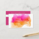 Les cartes de rendez-vous chic en aquarelle pour votre salon, spa ou services de beauté présentent votre nom ou nom d'entreprise sur une illustration en inkblot fleurissant dans des teintes lumineuses et colorées de coucher de soleil de rose fuchsia et verge d'or. Ajoutez votre politique d'annulation, votre titre personnalisé et vos coordonnées à l'arrière en blanc sur magenta. Inclut l'espace à écrire dans la date et l'heure du prochain rendez-vous de votre client.