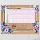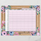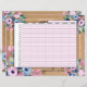 Cette feuille de temps de rendez-vous professionnels élégante et féminine est parfaite pour toute entreprise moderne ; salons, magasins et diverses entreprises. Elle présente des fleurs et des feuilles aquarelles peintes à la main en bleu rose, vert sarcelle, jaune et noir autour d'une bordure dorée imprimée fausse avec une zone de texte rose blush sur un fond de papier kraft marron. C'est campagnard, mignon, joli et unique. Au dos, il y a un espace pour votre logo et les informations de votre entreprise. ***Contactez le concepteur si vous avez besoin d'une modification de la feuille.***