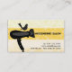Conception customisée facile de rendez-vous de cosmetologist de salon de coiffeur avec des fleurs de soufflement d'un sèche-cheveux et un oiseau moqueur illustré. Sèche-cheveux et illustration moqueuse de silhouette d'oiseau avec l'arrière - plan floral jaune audacieux saisissant. Conception moderne fraîche de rendez-vous de cosmetologist pour des filles, femmes, magasins de beauté, salons de coupe de cheveux, styliste en coiffure, consultant en matière de styliste, coiffeurs. Carte de visite pour des salons de beauté, des coiffeurs et des coiffeurs.