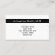 La carte de rappel de rendez-vous de ce médecin professionnel est recto verso. La première partie indique "Votre prochaine nomination" et comporte des lignes pour la date et l'heure du rendez-vous. En bas, il y a le texte d'affichage que vous pouvez modifier pour créer un message personnalisé si vous le souhaitez. (Affichage : Veuillez fournir un préavis de 24 heures si vous ne pouvez pas garder votre rendez-vous.) La deuxième partie a un texte d'affichage à remplacer par le nom du médecin (ou le nom de l'exercice) et son adresse, son numéro de téléphone et son site Web. Tout le texte peut être modifié ou supprimé. Le texte est noir.