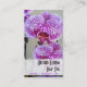 Cet avant standard de carte de visite avec une belle orchidée pourpre variée de Phalaenopsis connaissent également comme une "orchidée de mite" a conçu comme carte de rendez-vous. Le dos offre l'espace pour l'information de rendez-vous. Complétez les gisements de modèle de votre information, ENLEVEZ le texte non désiré et la barre des textes ou cliquez sur la personnaliser il ! pour choisir un style de police, la taille et vous colorer préfèrent. Cette conception colorée de photographie de fleur pourrait convenir aux instructeurs de yoga ou de forme physique, aux thérapeutes, aux spas ou à vos affaires.