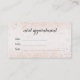 Un carte de visite élégant et très féminin avec des diamants roses en or et des étincelles. Au verso se trouve un rappel de rendez-vous qui peut également être customisé.