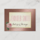 Ce carte de visite est conçu avec un arrière - plan rose en or, rose et taupe, et une rose vintage rose dans le coin des deux côtés ! L'arrière comporte une ligne de rendez-vous. Entièrement personnalisable pour toute profession comme un coiffeur, un cosmétique, un wedding planner, un design d'intérieur ou toute personne qui aime un carte de visite glamour.