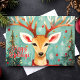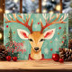 Célébrez les fêtes avec cette charmante carte de vœux de renne, mettant en vedette un renne fantaisiste orné d'ornements festifs et entouré d'arbres de Noël et de flocons de neige. Le design peint à la main ajoute une touche unique et cosy, parfait pour envoyer des vœux de vacances sincères. Idéal pour répandre la joie et la chaleur cette saison de Noël.