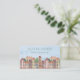 Un carte de visite adapté à un professionnel qui travaille avec des maisons comme un agent immobilier, un palpitant, un rénovateur, un constructeur ou un nettoyeur de maison. Sur un arrière - plan d'aquarelle bleu, une illustration d'aquarelle d'une rangée de maisons dans une rue est montrée. Personnalisez-vous en ajoutant vos coordonnées commerciales et de contact à l'avant et à l'arrière.