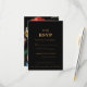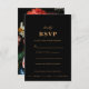 Carte Faire-part de mariage RSVP Flore Noir foncé. Cette carte comprenait des choix de repas. Texte couleur cuivre entièrement personnalisable. Floral sur le dos. Moody, élégant et moderne.