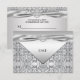Réponse à une soirée élégante d'anniversaire de mariage de 25 ans en argent avec une bordure de diamants argentés. Cette belle carte de réponse pour une soirée d'anniversaire de mariage de 25 ans en argent fonctionne bien comme une invitation à une fête d'anniversaire, une soirée cocktail, une fête de retraite, et toute autre occasion spéciale. Personnalisez avec votre choix de style de police et de couleur de police. Il s'agit d'un design imprimé plat sans vrais bijoux, rubans ou pièces ajoutées.