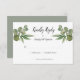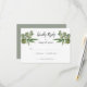 Caractérisée par une délicate verdure d'eucalyptus à l'aquarelle, cette chic carte de réponse botanique peut être personnalisée avec vos informations de réponse spéciales, avec un fond de couleur assorti au verso ou ajouter des informations supplémentaires telles que le choix de menu. Parfait pour les mariages, les fêtes de mariage, les fêtes prénatales, les baptêmes, les fêtes de fiançailles, les célébrations d'anniversaire, les remises de diplômes, les anniversaires et autres événements spéciaux tout au long de l'année ! Conçu par Thisisnotme
