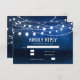 Carte de réponse de mariage avec des lumières de chaîne argentées et une nuit bleue élégante. Le texte peut être modifié en utilisant le menu "Détails" à droite. Pour adapter tout à vos besoins, veuillez cliquer sur le bouton "Personnaliser" et vous pourrez changer le style de texte, la couleur de fond et de papier. D'autres couleurs sont disponibles. Vous pouvez changer le type de papier sur le côté droit du menu "Comparer les papiers". Veuillez me contacter si vous avez besoin d'aide, pour des articles assortis ou si vous avez des souhaits spéciaux.