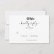 Caractérisée par une élégante guirlande florale noire et blanche et une typographie chic, cette carte de réponse botanique chic peut être personnalisée avec vos informations de réponse spéciales. Les noms des heureux couples figurent au verso, ou vous pouvez ajouter des informations supplémentaires telles que le choix du menu au verso. Parfait pour les mariages, les douches de mariée, les douches de bébé, les baptêmes, les fêtes de fiançailles, les célébrations d'anniversaire, les remises de diplômes, les anniversaires et autres événements spéciaux tout au long de l'année ! Conçu par Thisisnotme