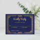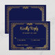 Réponse élégante de mariage bleu marine et doré. Cette carte de réponse soigneusement conçue complète le thème luxueux de votre mariage, avec un fond bleu marine sophistiqué orné de motifs art déco dorés complexes. La typographie élégante et les accents de dorure ajoutent une touche de glamour, captivant vos invités par chaque détail. Parfaite pour accompagner vos invitations de mariage bleu marine et doré, cette carte de réponse numérique est à la fois élégante et fonctionnelle, facilitant la réponse de vos invités tout en maintenant l'élégance de votre événement.