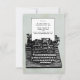 Carte de réponse ou RSVP de style machine à écrire vintage et rétro pour votre événement de mariage inspiré du steampunk vintage. Du vieux style à son meilleur, avec une vieille machine à écrire et un morceau de papier. Faites savoir à vos invités de répondre avec leur choix de repas et de renvoyer leur RSVP pour votre mariage.