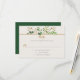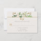 Des feuilles vertes, de l'eucalyptus et des bourgeons dorés sur un fond ivoire accompagnent les détails de votre réponse. Le dos de la carte est vert foncé. Les zones de texte sont faciles à personnaliser avec vos propres informations. Un mélange de polices modernes et de calligraphie fait de ceci une carte de réponse de mariage parfaite.