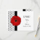 Le texte sur cette carte de réponse RSVP de mariage à marguerite rouge à pois noirs et blancs est entièrement personnalisable. Pour le modifier, utilisez l'option de personnalisation. Pour des changements de texte plus importants, tels que des modifications de la police, de la couleur de la police ou de la mise en page du texte, utilisez l'option de personnalisation avancée. Cette carte de réponse RSVP à fleur de gérbera rouge et à pois pourrait être utilisée pour un mariage ou toute autre occasion spéciale. Vraiment, c'est à vous. Vous devez juste changer le texte. REMARQUE : Il s'agit d'un design imprimé à plat sans aucun embellissement en relief ou en 3D. Cela fait partie d'un ensemble de papeterie thématique.