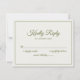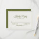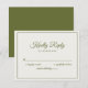 Raffinée et romantique, cette carte de réponse RSVP présente un devant couleur crème doux avec un cadre vert olive délicat et des accents de calligraphie élégants. D'une taille de 4,25" x 5,5" en vue portrait, elle comprend « Kindly Reply » en grande écriture élégante, une date de réponse personnalisable, une ligne personnalisée pour les noms des invités et trois options de réponse gracieuses : « Happily Accepts », « Regretfully Declines » et « Number Attending ». Le dos est d'un vert olive rustique uni pour une finition audacieuse et soignée. Parfaite pour les thèmes de mariage formels, minimalistes ou romantiques en olive, crème ou or mat. S'harmonise parfaitement avec nos invitations, notre signalétique, nos doublures d'enveloppe et nos bandeaux assortis. Liez le tout avec cet encart de réponse intemporel, conçu pour compl