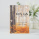 Cartes de réponse de mariage automnal champêtre avec une forêt automnale rustique avec des feuilles rouges, orange et dorées, des bouleaux argentés, un cœur sculpté de conte de fées sur l'arbre avec les initiales des mariés, et un modèle de réponse de mariage élégant et éditable.