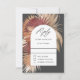 Un beau mélange de palmiers séchés tropicaux encadrant votre texte dans un cadre arqué géométrique populaire ajoute un attrait distinctif à cette carte de réponse de mariage. La palette de couleurs neutres chaudes est un choix polyvalent tout au long de l'année et est particulièrement charmante pour les mariages d'été ou d'automne. Montré ici sur un fond gris charbon, d'autres couleurs sont disponibles. Personnalisez le modèle de texte avec la date de réponse requise.