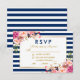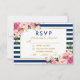 Carte de réponse de mariage avec choix de repas aux rayures roses et bleues aquarelle florale