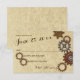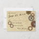 Carte de réponse de mariage avec un design inspiré du steampunk avec engrenages industriels rustiques dans des tons de bronze, de cuivre et d'acier.