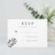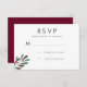 Une carte de réponse/rsvp de mariage moderne festive, avec une branche de baies aquarelles vertes et rouges. Le dos est en bordeaux uni. Les articles assortis à ce design sont disponibles.