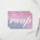 Carte de réponse bordeaux et marine avec fond aquarelle original, le verso comporte un espace pour que les invités écrivent leurs noms, qu'ils puissent venir ou non, et ce qu'ils veulent comme repas.