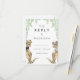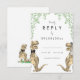 Célébrez votre amour d'une manière unique, amusante et fantaisiste avec cette carte de réponse à l'invitation de mariage en forme de dinosaure T-Rex botanique pour les mariés. Avec un feuillage d'eucalyptus peint à l'aquarelle, ce design allie la beauté de la nature à une touche de dinosaure ludique. L'illustration originale de l'artiste Catherine Sweetman donne vie aux adorables mariés dinosaures, capturant parfaitement l'esprit de votre journée spéciale. La typographie élégante ajoute une touche sophistiquée, faisant de cette carte le moyen idéal pour que vos invités répondent à votre invitation. C'est un ajout charmant et mémorable à votre collection de papeterie de mariage qui fera sourire tous ceux qui la recevront.