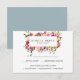 Conçu pour se coordonner avec notre collection de mariage Brilliant Bloom, cette carte de réponse RSVP fraîche rose, bleue poussiéreuse et à motifs botaniques blancs présente un cadre de verdure aquarelle et de fleurs roses sur votre date de réponse souhaitée, une formulation personnalisée d'acceptation et de refus et une sélection d'options de repas.