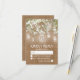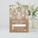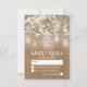 Cartes de réponse de mariage champêtre avec lumières scintillantes comportant un fond à effet toile de jute marron rustique, des guirlandes de lumières élégantes sur un pot mason, des fleurs de baby breath et une formulation blanche.