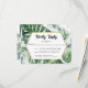 Cette charmante carte de réponse de mariage aquarelle à la végétation tropicale présente une végétation tropicale peinte à la main. Les feuilles de Monstera et de palmier dans une aquarelle vert émeraude vibrant donnent le ton parfait pour votre mariage sur le thème tropical.