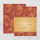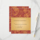 Des motifs paisley dorés surimpriment un fond de couleur rouille foncé. Le texte de mariage personnalisé est placé sur un panneau à dégradé doré. Idéal pour un mariage sur le thème de l'Asie du Sud-Est ou lorsque vous souhaitez faire une déclaration chaleureuse et audacieuse. Disponible en couleurs alternatives avec des produits assortis.