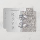 Cartes RSVP de mariage sur mesure élégantes en argent avec un beau motif de paillettes argentées imprimées, un joli nœud et ruban imprimés en argent brillant et un joli bijou diamant clinquant imprimé. Ces cartes plates, classe, glamour et à la mode sont décorées des deux côtés. De belles invitations chic, tendance et modernes. VEUILLEZ NOTER : Il s'agit de graphiques imprimés plats - pas de vrais nœuds, paillettes ou parties en relief. Le texte, la police et la couleur de la police peuvent tous être personnalisés. Si vous avez besoin d'aide pour personnaliser votre produit, veuillez me contacter via ma boutique. Je serai ravi de vous aider. J'ai des produits assortis dans ma boutique.