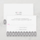 La simplicité est la clé de cette carte de réponse de mariage à motif damassé. La typographie claire avec des rappels en rose vif se fond dans une bordure damassée ornée en bas. Les initiales du couple sont mises en valeur au verso ainsi que la date de l'événement. Disponible en couleurs alternatives avec des produits assortis.