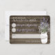 Carte de réponse Lavande et respiration de bébé pour compléter notre ensemble d'invitation de mariage. Grange rustique de campagne en bois et pot de conservation rempli de fleurs de lavande et de respiration de bébé.