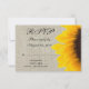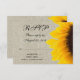Cartes de réponse de mariage rustique Tournesol jaune avec une photo en gras d'un tournesol sur un fond d'effet photo en lin beige. Un choix magnifique pour la carte de réponse à l'invitation de mariage si vous avez un mariage champêtre, un mariage à thème toile de jute ou un mariage d'automne. Entièrement personnalisable, y compris votre choix de polices vintage rustiques en utilisant le menu d'édition. Ajoutez vos informations personnelles et choisissez votre palette de couleurs, y compris de nombreux choix de papiers merveilleux. Besoin d'aide pour personnaliser votre pochette de mariage ? Veuillez contacter luxuryweddinginvitations@gmail.com