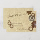 Carte de réponse de mariage avec design inspiré du steampunk avec engrenages industriels rustiques dans des nuances de bronze, de cuivre et d'acier.
