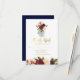 Cartes de réponse de mariage automnal élégant avec un fond blanc classique à l'avant et un fond bleu marine à l'arrière, les deux peuvent être changés en n'importe quelle couleur, un pot Mason rustique, une étiquette avec les initiales du couple, un affichage floral aquarelle burgundy élégant, rouge marsala et blush, et un modèle de réponse de mariage moderne.