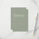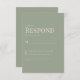 Carte de réponse de RSVP de mariage. Dîner et danse. Police moderne. Police combinée. Fond de sauge. Texte crème.