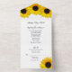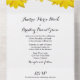 Carton d'invitation de mariage tout-en-un déchirable tournesol jaune avec réponse. Design de carte de réponse déchirable pour invitation de mariage simple qui présente un beau tournesol jaune sur fond blanc. Jaune, noir et blanc, cette invitation simple est idéale pour un mariage rustique ou d'automne.