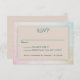 Cartes de réponse de mariage de couleur beige sable avec apparence stratifiée. Texte bleu-vert foncé avec une formulation de présence simple. Le design correspond à notre collection de mariage "Les mers vivantes".