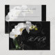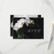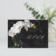 Carte RSVP pour aller avec la collection Orchid Set complète. Célébrez votre mariage, ou occasion spéciale avec style avec ce design inspirant et passionné d'orchidée blanche sur fond noir tourbillonnant. Caractéristiques d'un gros plan d'une orchidée blanche en pot pittoresque contrastant avec un fond noir avec des tourbillons graphiques.